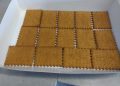 4.  מורחים את מילוי הוניל על הבסקוויטים הלבנים.