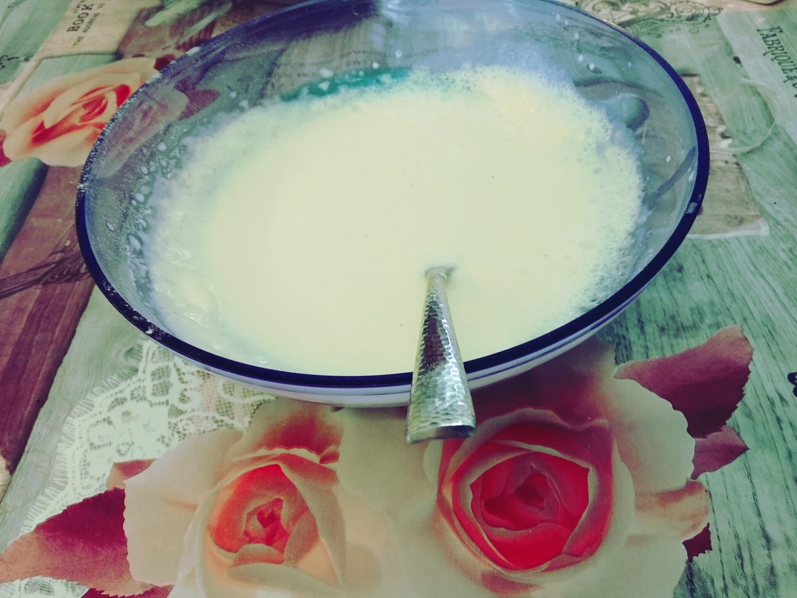 מקציפים יחדיו 1 שמנת מתוקה, חצי כוס חלב, חצי שקית סוכר וניל, אינסטנט פודינג וניל, 1 וחצי כפות סוכר.