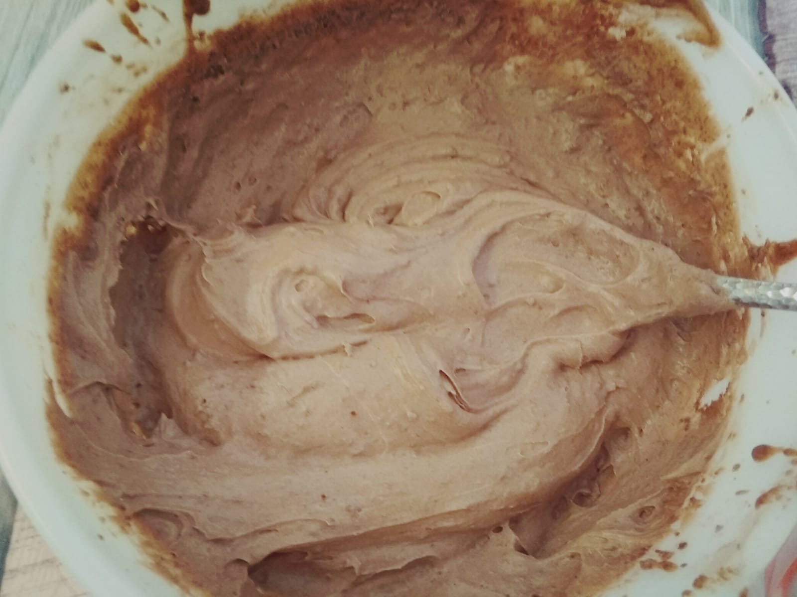 מקציפים יחדיו 1 שמנת מתוקה, חצי כוס חלב, חצי שקית סוכר וניל, אינסטנט פודינג שוקולד, 1 וחצי כפות סוכר.