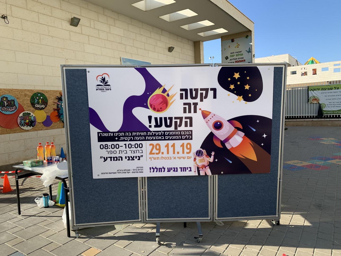 לאחר 45 דקות של יצירה, התייצבו הקבוצות לשיגור. קבוצת ההורים והילדים ששיגרו ראשונים נחלו כישלון והרקטה שלהם לא הצליחה להתרומם. קבוצת המורות שהגיעה אחריהן הצליחו לשגר את הרקטה לגובה. קבוצת הצופים גם הם נחלו כישלון, קבוצת המצויינות הצליחו לשגר למרחק קצר בניסיון השני והזוכים הגדולים של היום היו קבוצת ידידי החינוך שהצליחו לשגר את הרקטה שלהם למרחק משמעותי לאורך המסלול.