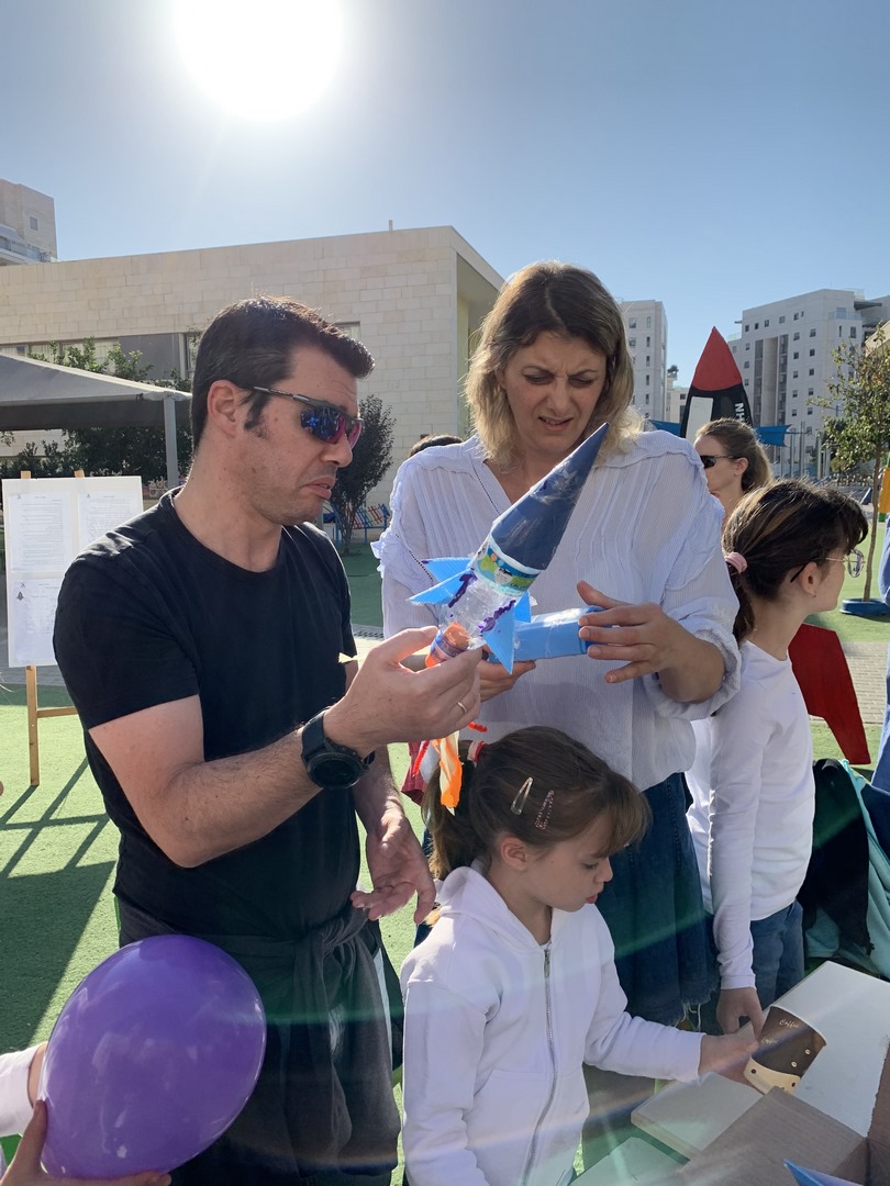 זהבה בן עקיבא, מתנדבת בידידי החינוך של בית הספר: "הגענו לבנות רקטה עם הילדים המקסימים ונראה איך נצליח לעשות את הרקטה".
