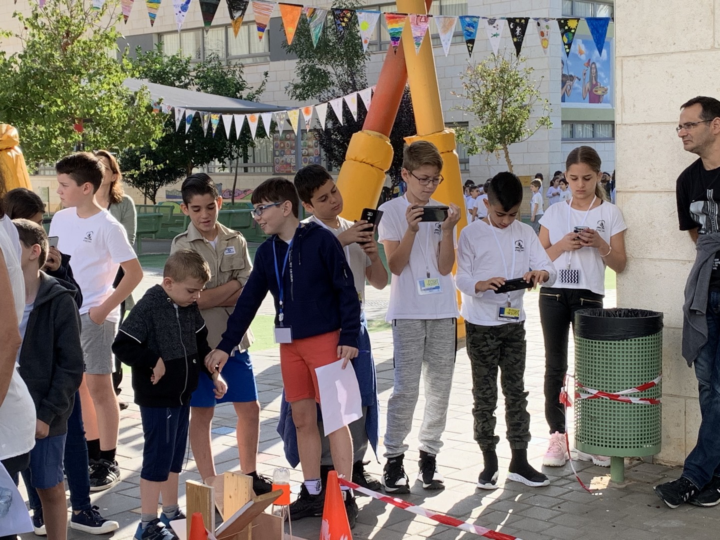 למשימה התייצבו 5 קבוצות: הורים ותלמידים, חניכי הצופים, המורות, ידידי החינוך ותלמידי קבוצת המצוינות. כל קבוצה קיבלה חומרים שונים להכנת רקטה, כאשר הבסיס להכנת הרקטה היה בקבוק פלסטיק.