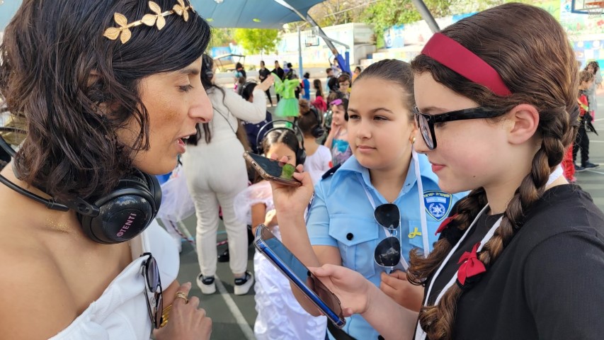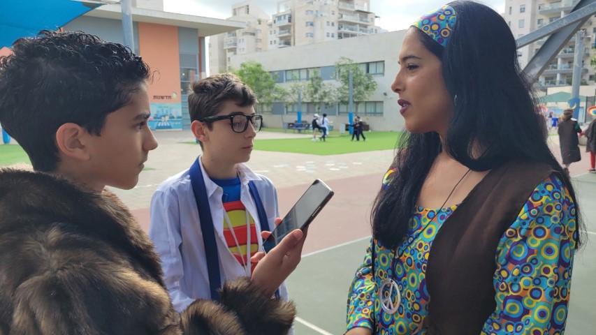 הדס מו'4: "אני פחות מתחברת למוזיקה אז אני בלי אוזניות, אבל אני מאוד נהנית. אני אוהבת בפורים להיות מי ומה שבא לי, לראות תחפושות של אחרים ולהיות גאה בתחפושת שלי. השנה אני טרמפיסטית שמטיילת במולטיוורס". נהוראי ותמיר: "התחפשנו לסיירת גולני וימ"מ. אנחנו מרגישים שבית הספר השקיע והתחפושת נראות ממש איכותיות ומושקעות. ואנחנו מאוד נהנים מהשמחה של כולם".
