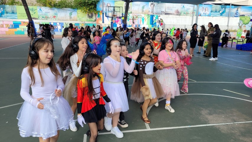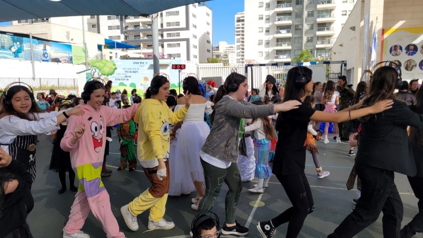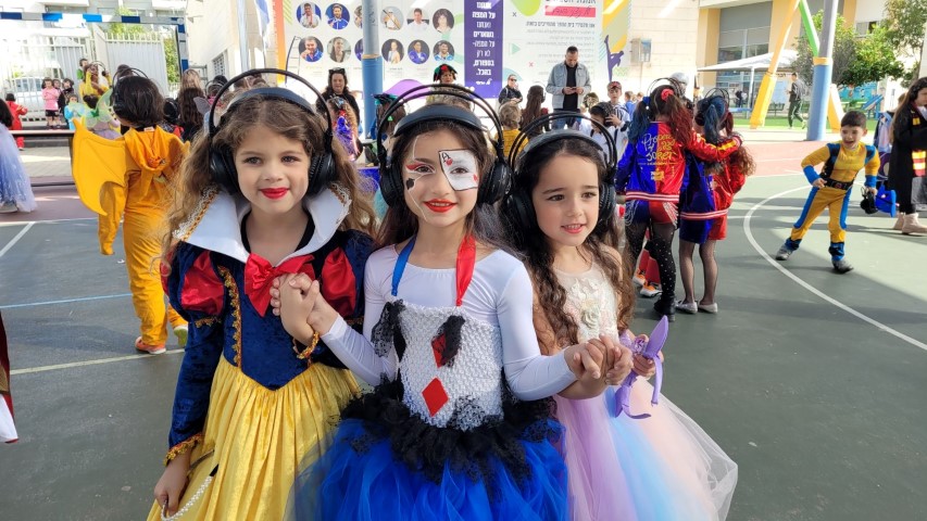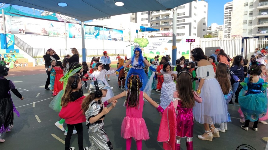 לימור מליחי, מנהלת בית הספר: "אני מאוד נהנית לראות את הילדים שמחים ומאושרים, בשביל זה אנחנו פה. כיף לראות את הילדים מחופשים בשלל תחפושות יצירתיות ולראות את המורים שהשקיעו. אני התחפשתי לאלה יווניה פשוט כי התחפושת מצאה חן בעיני. זה רגע מיוחד בשנה לא פשוטה שאפשר לשמוח עם כולם כאן במגרש במסיבת האוזניות".