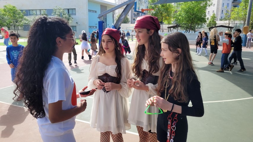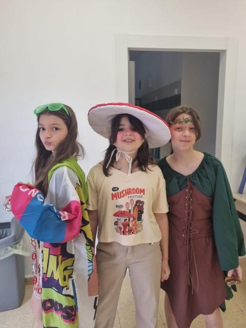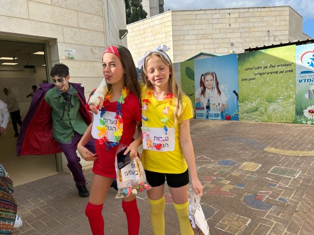 יעל ונועה מו'1: "התחפשנו לפטריק ובוב ספוג. אנחנו אוהבות בפורים את הצחוק. ובחופש אנחנו מופיעות". עדי וזוהר מו'4: "התחפשנו לראפריות, אנחנו אוהבות בפורים את ה-כ-ל. היינו שמחות לקבל במשלוח מנות המון ממתקים". דניאלה מו'4: "אני הכי אוהבת בפורים לראות אנשים מתחפשים ושמחים, אני אוהבת להתחפש לדברים מיוחדים השנה התחפשתי למתאגרפת". טל מו'1: "התחפשתי לתיבת נגינה. לפני שסבתא רבתא שלי נפטרה היא נתנה לי תיבת נגינה וכשישבתי עם אמא שלי וחשבתי למה להתחפש החלטתי להתחפש לתיבת הנגינה של סבתא אביבה".