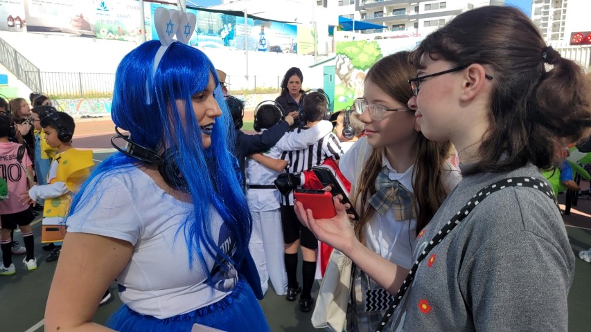 מאיה, שני ואריאל מה'1: "כיף שכולם מחופשים, כיף בפורים שיש משלוח מנות וחופש". מור לחמי, מורה בבית הספר: "התחפשתי לחיילת קצינה בצה"ל כדי לדווח לכם ישר מהשטח מה קורה. כיף שיצא לנו מזג אויר מצוין ושהילדים נהנים במסיבה ורוקדים , ועם האוזניות זה ממש כיף ושקט".