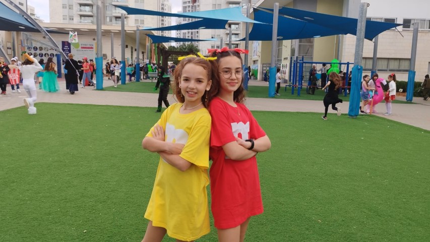 שירה ויהל מה'4: "התחפשנו לטום וג'רי. אנחנו מאוד אוהבות להתחפש. בעינינו משלוח מנות מושלם הוא המשלוח היצירתי, לא רק התכולה אלא גם המחשבה והאריזה". דניאל ו'': "אני אוהבת את המסיבות של פורים. אני התחפשתי למלאך. משלוח מנות מושלם בעיני הוא כזה שמביאים מהלב עם מחשבה וכוונה".