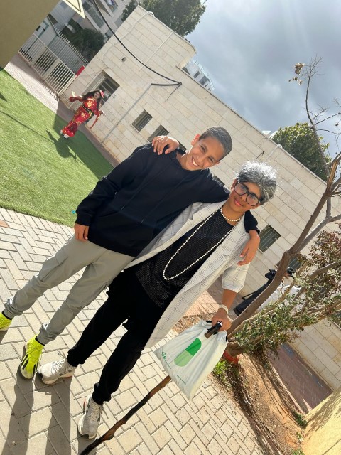 נויה מו'5: "אני אוהבת את הרעיונות לתחפושות של הילדים סביבי, יש כאן תחפושות של 'עם ישראל' או 'ביחד ננצח' כדי להגדיל מודעות וזה מרגש". יובל מו'5: "התחפשתי לאקס-בוקס כי זה הרעיון הכי טוב שהיה לי השנה, אבל בשנים קודמות התחפשתי לדברים יצירתיים כמו תשבץ וקוביה הונגרית".