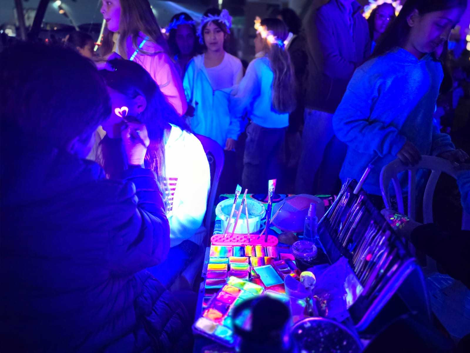 השנה חיכו לתלמידים בבית הספר תחנות מוארות: תיפוף וריקודים, יצירת ציור בחול, קעקועים, איפור ומופע אור ייחודי.  ליבי מכיתה ד'3: "היה ממש כיף בתחנות, אהבתי את התחנה של החול כי אפשר לצייר בה". תום, מכיתה ו': "הכל כאן נראה מטורף".